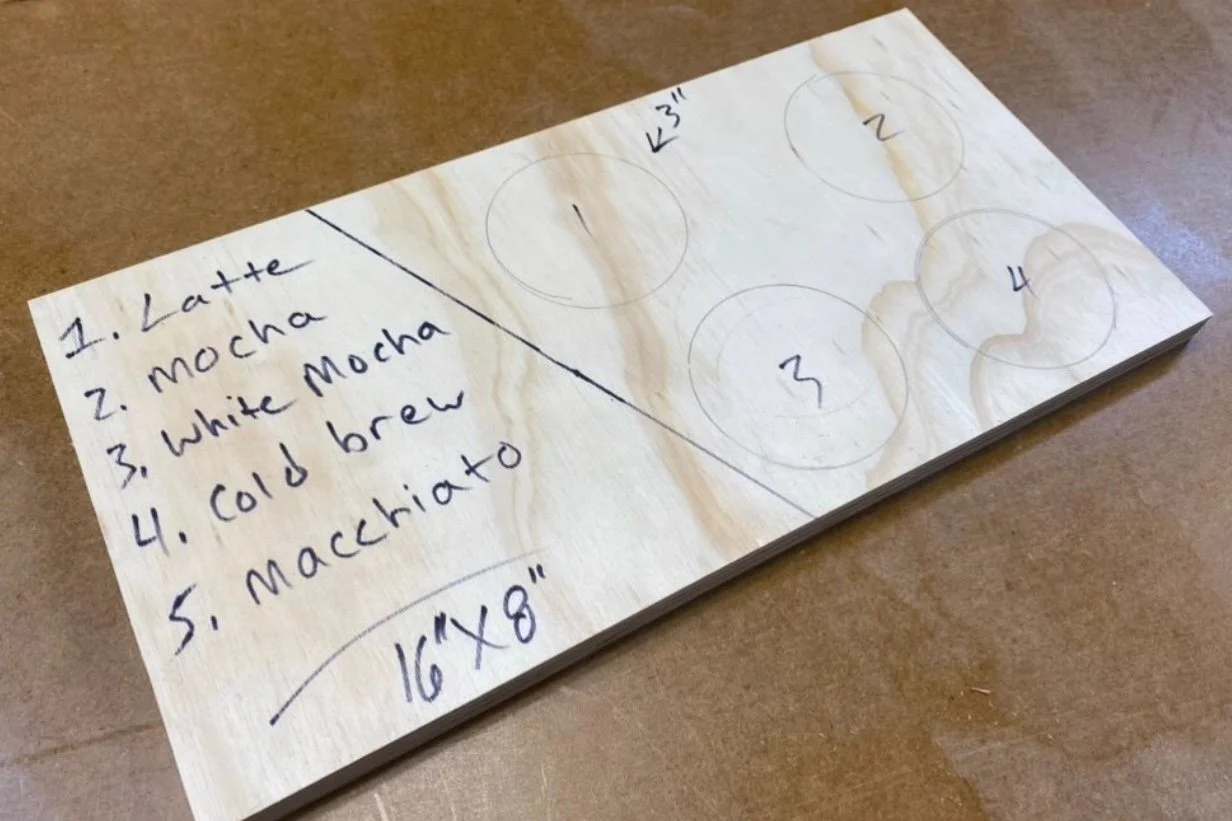 It’s interesting how technology can bring us together over the miles, and how we can communicate to bring visions to reality. When a new client from Ohio came to me to design drink flight boards for her new business, she had an idea in mind. Alicia, the owner of Bright Bubble Tea & More, had looked to Pinterest for inspiration and sent an example of what she was envisioning.